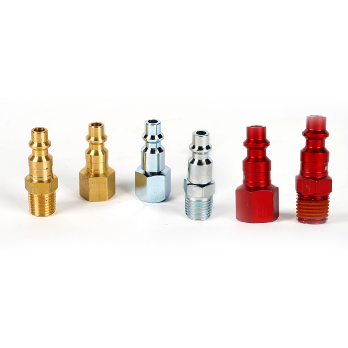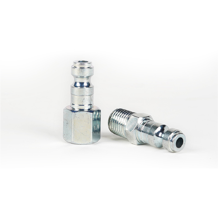 1/4 in. NPT Female and Male plugs. For use with T-style couplers. Steel/Brass construction